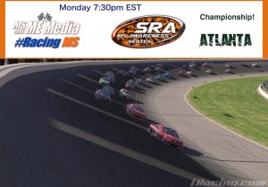 Don’t miss the Championship race tonight of the iRacing SRA MS Awareness Gen 6 Series in Atlanta. Airing on Max Speed TV starting at 7:30pm EST. Everyone is on the edge of their seats to see if leader Marcus Richardson, driver of the #01 MS & Me car, will make it back into town in time for the race!